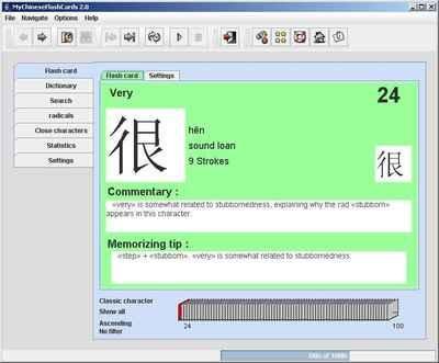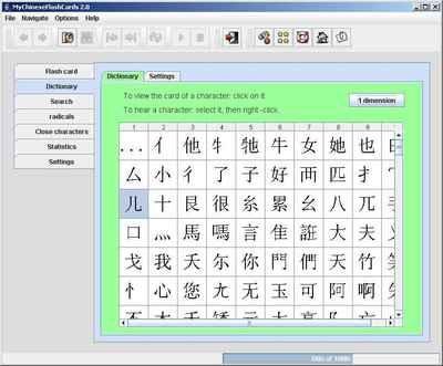 MyChineseFlashCards goal is to learn, hear and access the 1000 most used chinese characters. The user can navigate through the characters (flash cards) in different orders and choose between three learning strategies( learning, recognization ,writing).